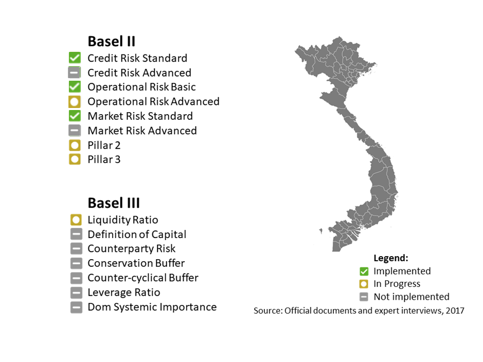 The implementation of international banking standards in Vietnam has been the subject of contestation between reformist and conservative factions within the governing political party. In any given period, the speed of implementation has been affected by which of these factions dominates regulatory decision making, as well as the health of the banking sector.